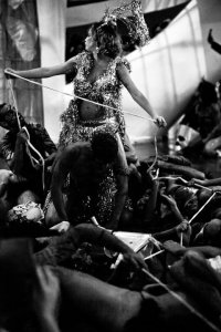 O Bailado do Deus Morto de Flávio de Carvalho encenada na 29ª Bienal de Sâo Paulo. Nas rampas do edifício de Niemeyer Pavilhão Ciccillo Matarazzo o público seguia o fio de Ariadne no labirinto moderno e contemporâneo das artes sob a regência de Zé Celso Martinez Correa.