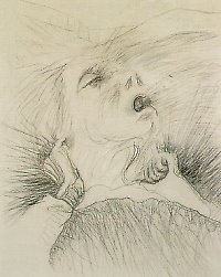 Exemplar da sequência de desenhos que retratam a morte de Dona Ofélia, mãe do artista Flávio de Carvalho.